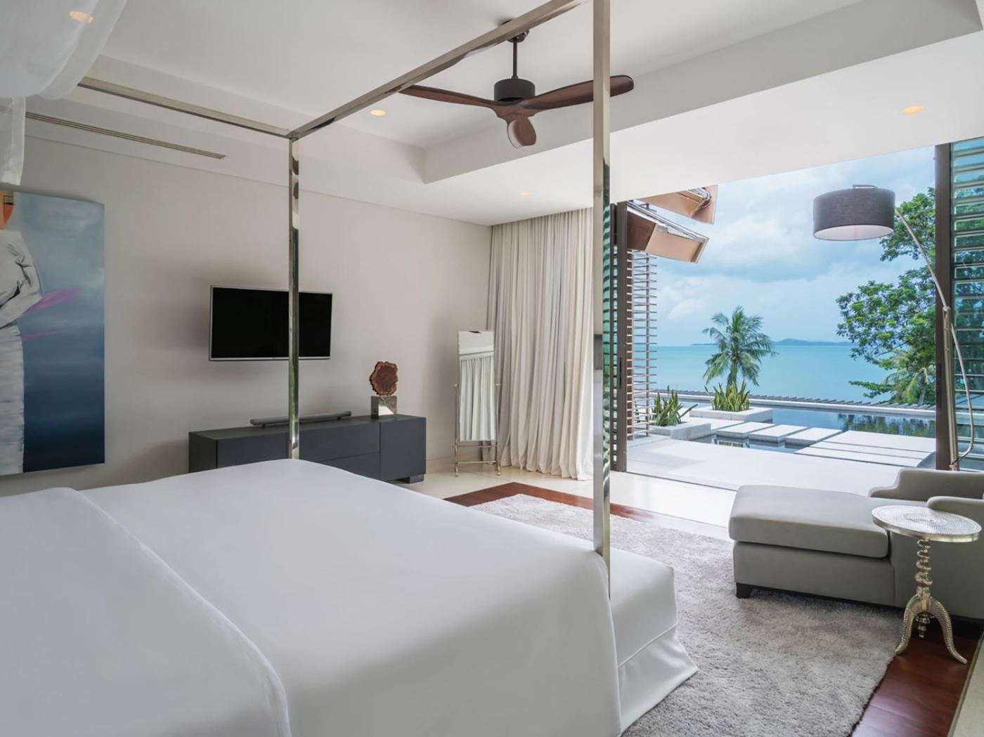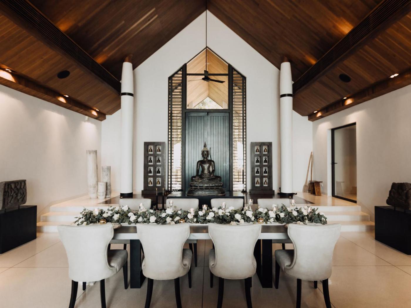 The villa comes with four spacious bedrooms each fitted with an en suite bathroom and uninterrupted panoramic views of Phang Nga Bay and the surrounding islands. Offering plenty of natural sunlight in its opulent living area, it also has a tastefully designed 30-metre infinity pool with a swim-up bar and a garden.