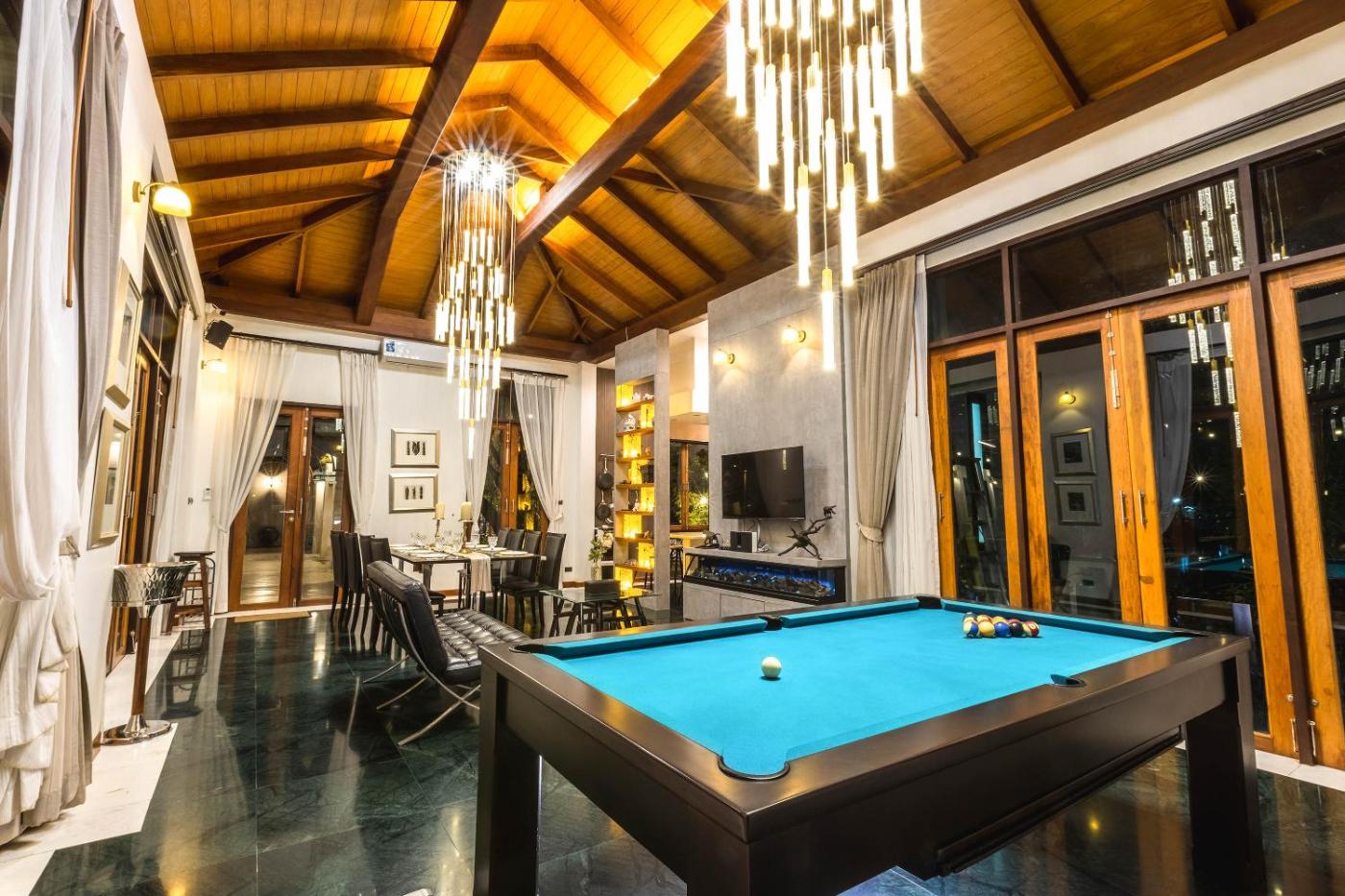 Villa with Private Pool. Guests will have a special experience as this villa offers a pool with a view and a hot tub. This spacious villa comes with 2 living rooms, 5 separate bedrooms and 6 bathrooms with a bath and free toiletries. Guests will find a stovetop, a refrigerator, kitchenware and an oven in the kitchen. The villa also includes a barbecue. The air-conditioned villa features a flat-screen TV with streaming services, a washing machine, a tea and coffee maker, a seating area as well as lake views. The unit has 5 beds and 1 futon.