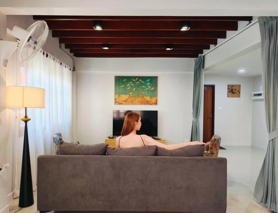 Three-Bedroom House. Guests can make meals in the kitchen that has a stovetop, a refrigerator, an oven and a microwave. The spacious air-conditioned holiday home features a flat-screen TV with cable channels, a washing machine, a private entrance, a seating area as well as garden views. The unit has 4 beds.