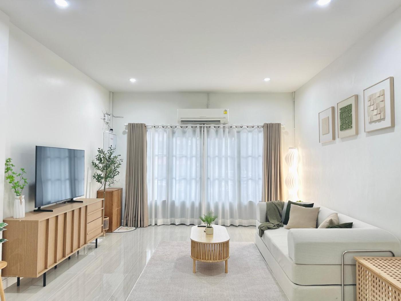 Three-Bedroom Apartment. This air-conditioned apartment consists of 1 living room, 3 separate bedrooms and 2 bathrooms with a shower. Guests can make meals in the kitchen that is equipped with a stovetop, a refrigerator, kitchenware and a microwave. The apartment provides a flat-screen TV with streaming services, a washing machine, a seating area, a dining area as well as city views. The unit offers 7 beds.