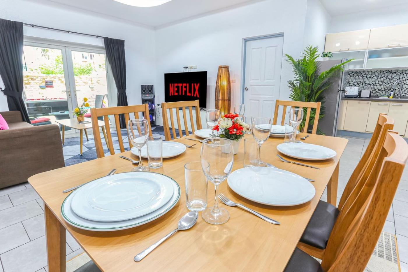 Villa with Private Pool. This villa features a pool with a view. This spacious villa features 1 living room, 4 separate bedrooms and 3 bathrooms with a shower and free toiletries. Guests can make meals in the kitchen that has a stovetop, a refrigerator, kitchenware and an oven. The air-conditioned villa features a flat-screen TV with streaming services, a washing machine, a private entrance, soundproof walls as well as pool views. The unit has 4 beds.