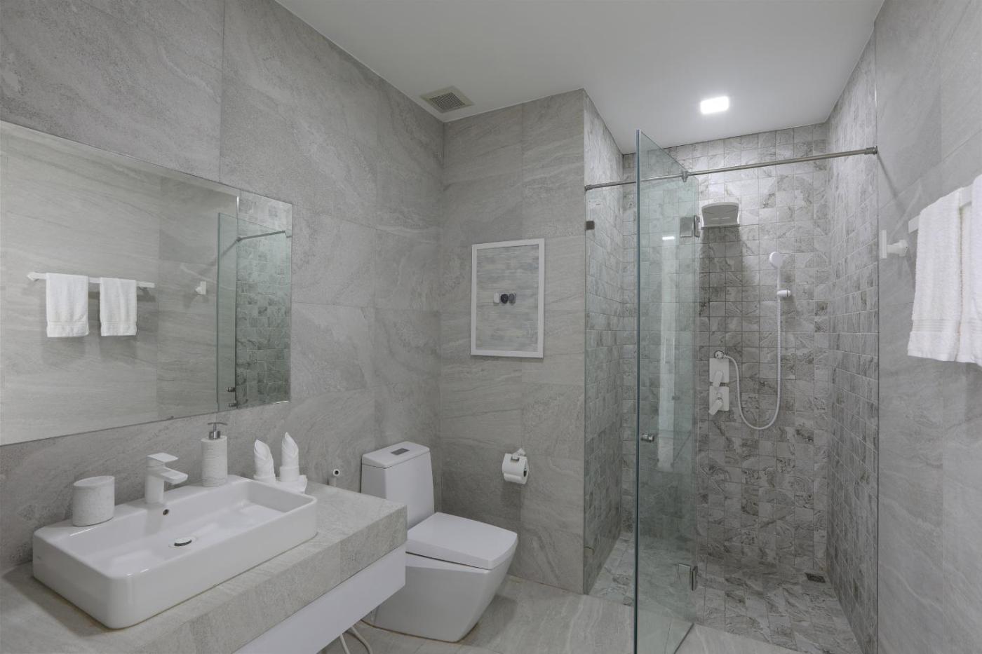 Villa with Sea View. The pool with a view is a top feature of this villa. Boasting a private entrance, this air-conditioned villa comes with 1 living room, 4 separate bedrooms and 5 bathrooms with a bath and a shower. In the fully equipped kitchen, guests will find a stovetop, a refrigerator, a dishwasher and kitchenware. The spacious villa features a flat-screen TV, a washing machine, a tea and coffee maker, a wardrobe as well as sea views. The unit has 4 beds.