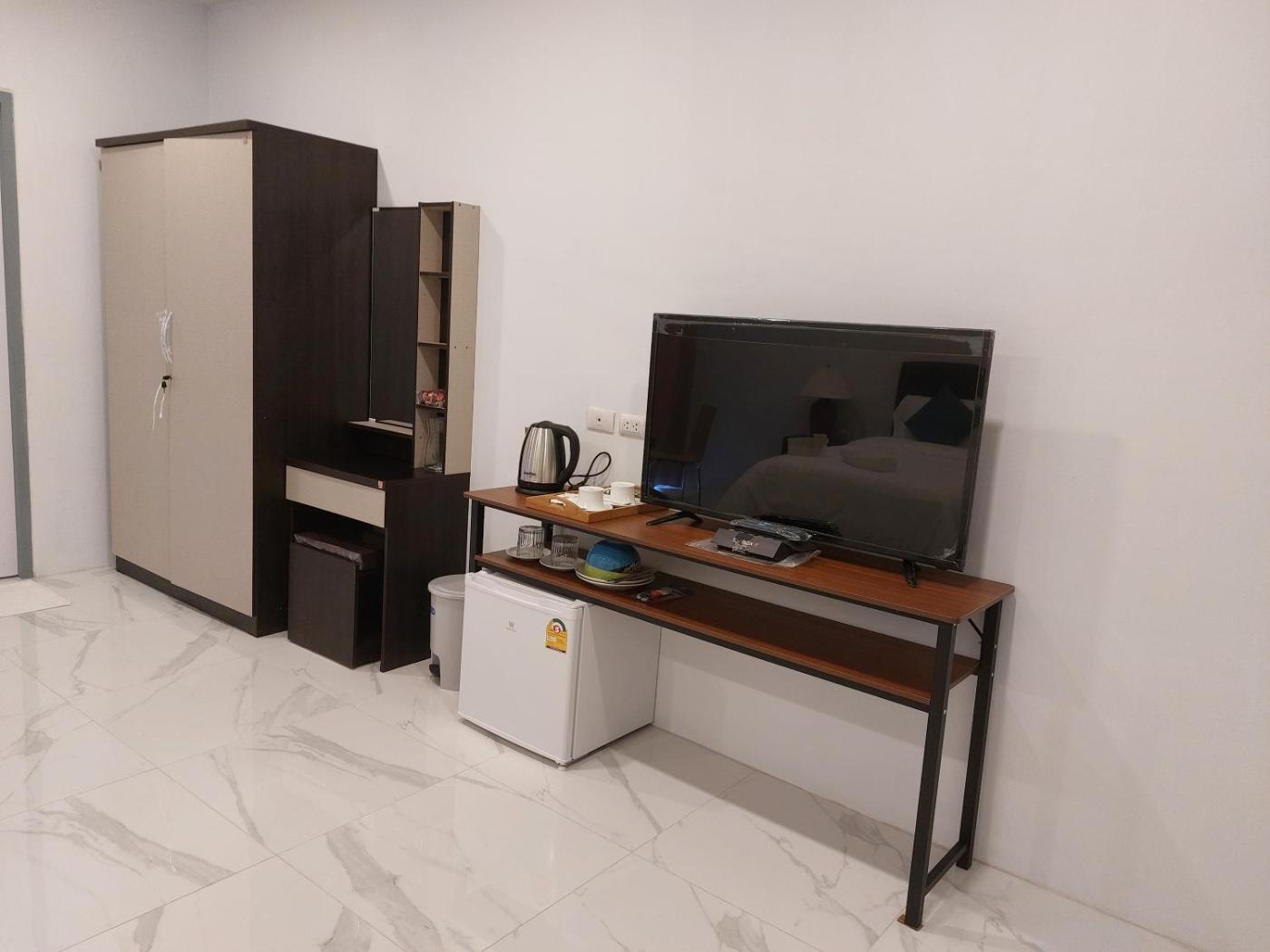 At the apartment complex,units have a desk and a flat-screen TV. The units will provide guests with a fridge.