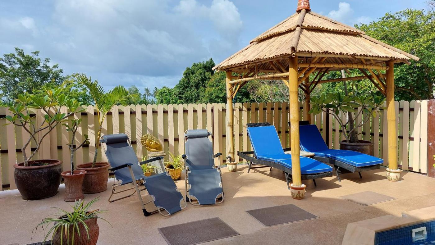 Appointed with Thai architecture, the villa comprises 3 bedrooms and 3 bathrooms, equipped with a bath and a shower. There is a seating area, a dining area, and a kitchen complete with a rice cooker and a microwave. A flat-screen TV is featured.