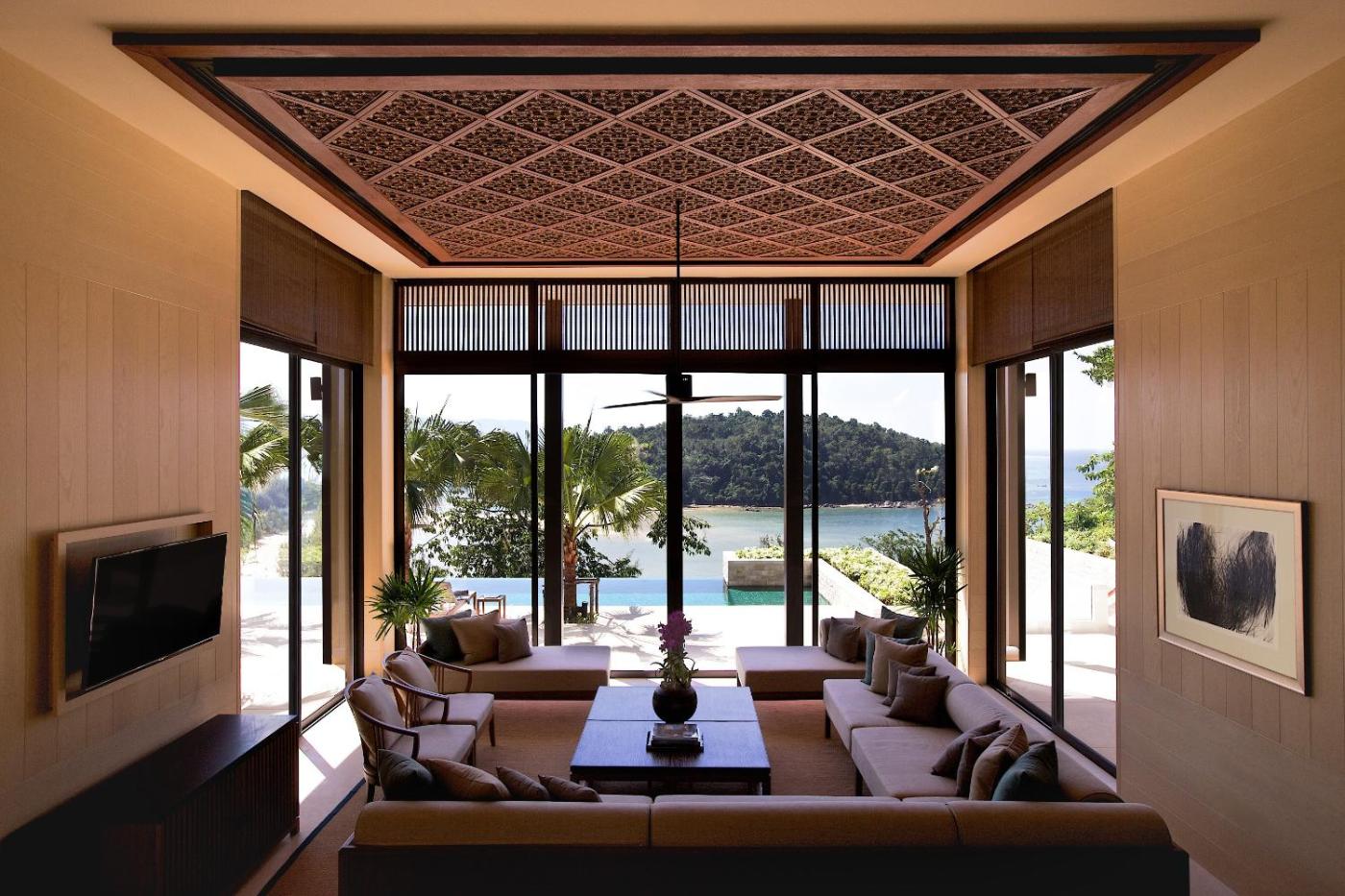 Three-Bedroom Sea View Residence. Boasting a private infinity pool and a Thai-style dining pavilion, this residence includes butler services and a rooftop deck. There is a master bedroom on the second floor and 2 more bedrooms, joined by a study, on the ground floor. The villa also includes a fully-equipped kitchen, a lounging area and a dining room. ;