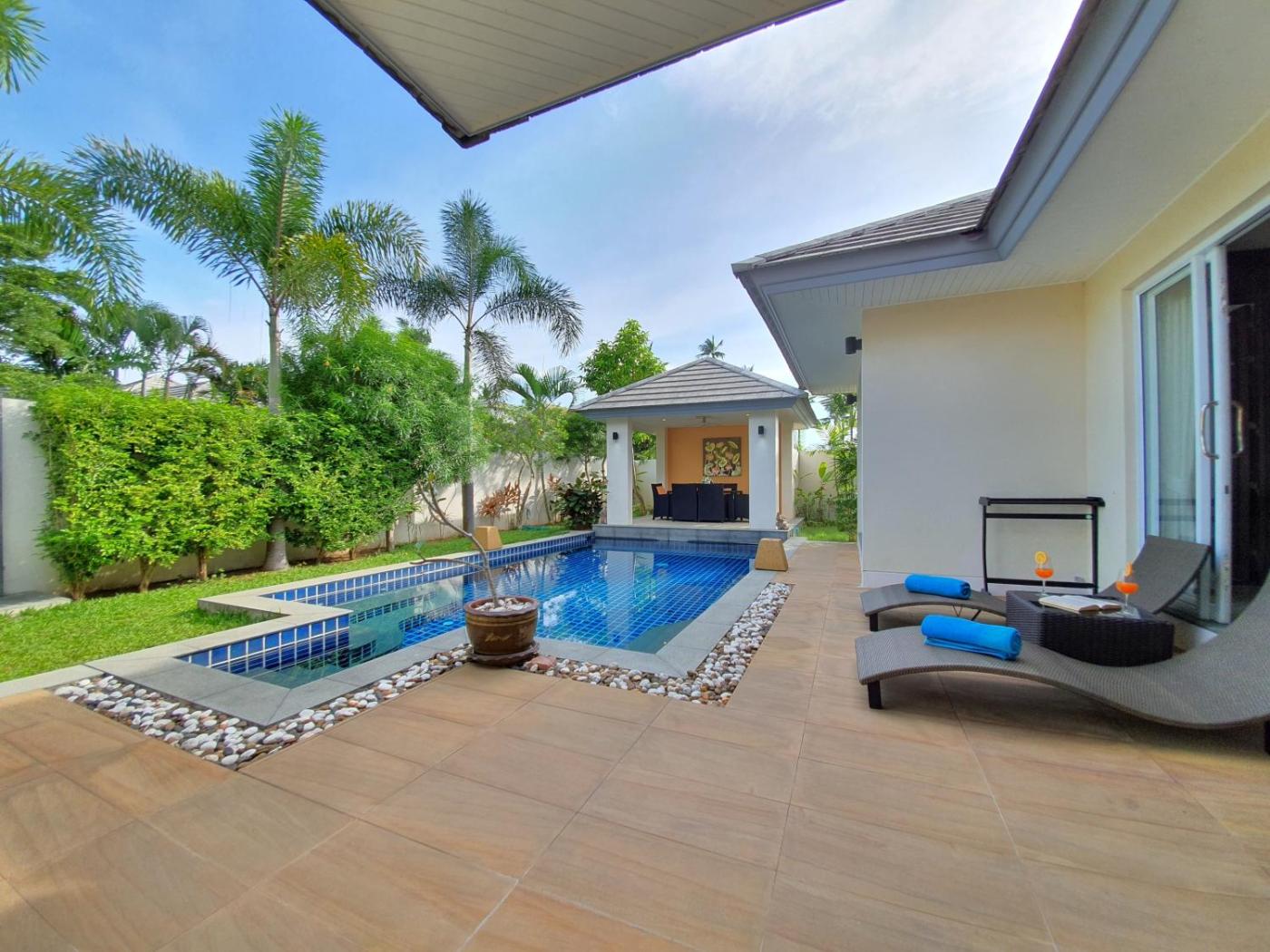 Two-Bedroom Villa. Guests will have a special experience as the villa offers a private pool. Featuring a private entrance, this air-conditioned villa consists of 1 living room, 2 separate bedrooms and 2 bathrooms with a bath and a shower. Guests will find a stovetop, a refrigerator, kitchenware and an oven in the kitchen. The villa also offers a barbecue. The villa provides a coffee machine, a seating area, a dining area, a flat-screen TV with cable channels, as well as garden views. The unit offers 3 beds. ;