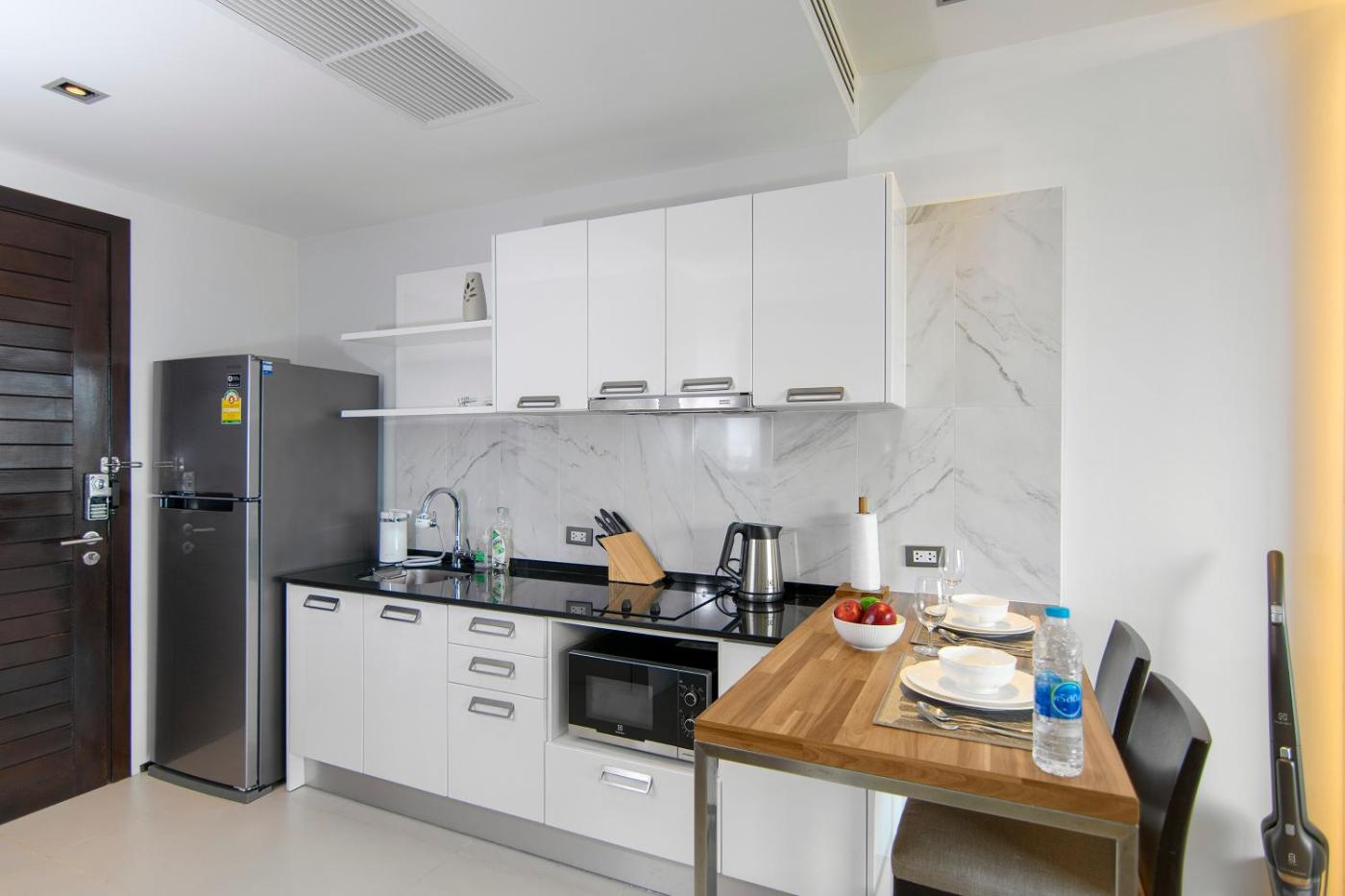 Deluxe Double Studio. The pool with a view is the standout feature of this studio. Featuring free toiletries, this studio includes a private bathroom with a walk-in shower and a bidet. Meals can be prepared in the kitchen, which features a stovetop, a refrigerator, kitchenware and a microwave. The air-conditioned studio features a flat-screen TV with cable channels, a washing machine, a private entrance, soundproof walls as well as sea views. The unit has 1 bed.