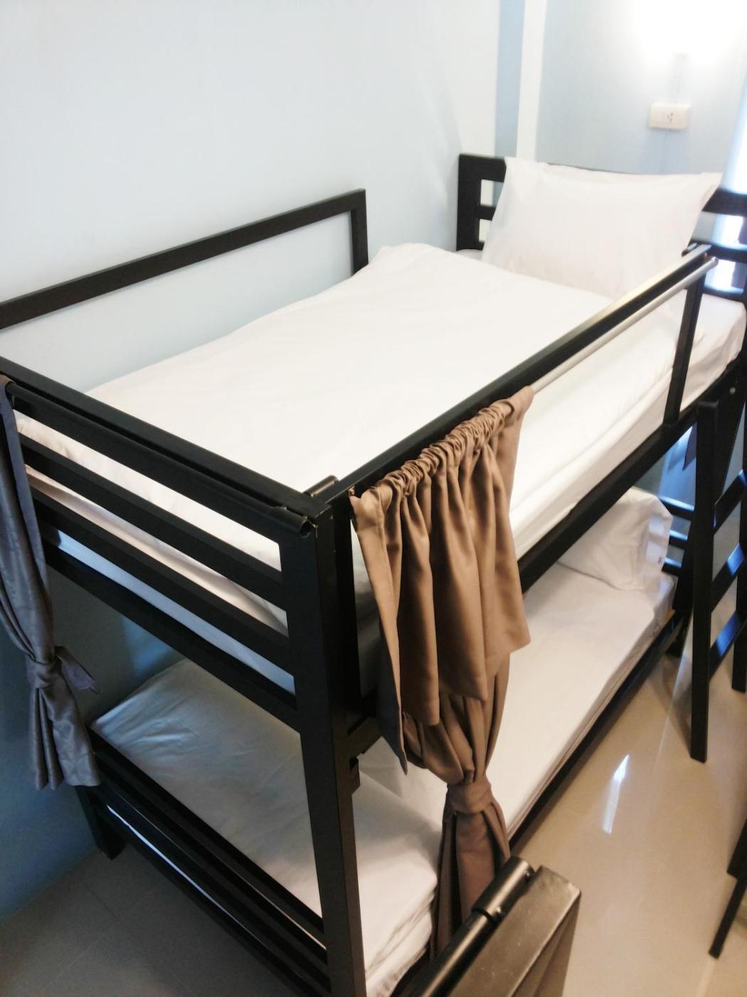 Bunk Bed in Male Dormitory Room. This bed in dormitory has a balcony, electric kettle and air conditioning. ;