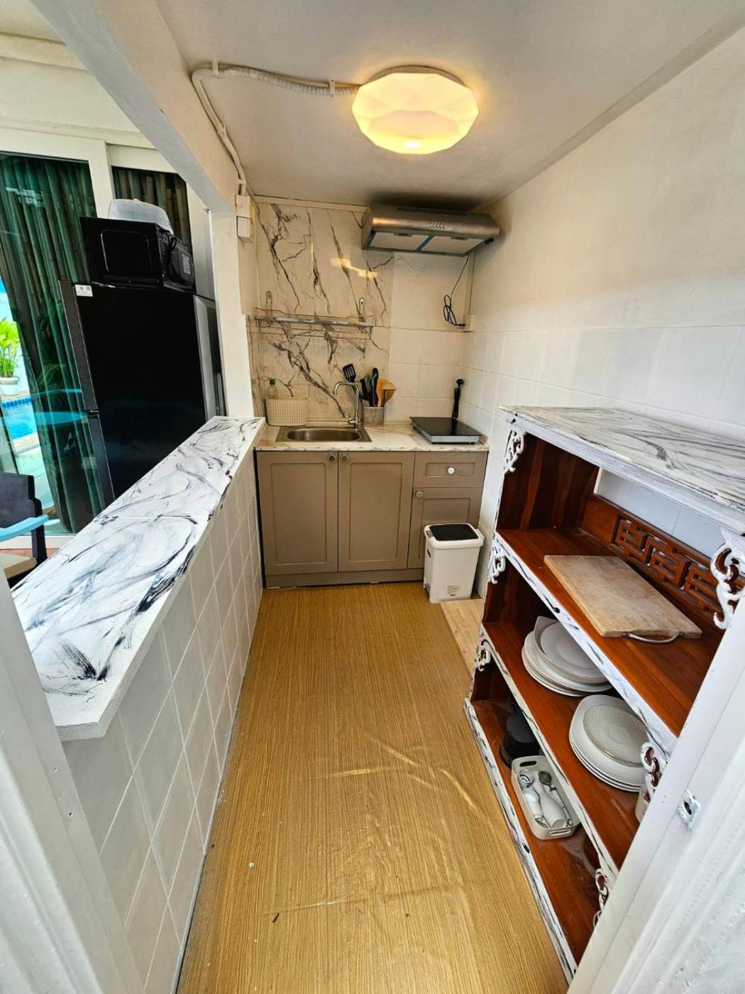 Three-Bedroom Villa. Guests will have a special experience as the villa offers a private pool. This spacious villa consists of 3 bedrooms, kitchen, a terrace and 3 bathrooms with a shower. Guests can make meals in the kitchen that is equipped with a stovetop, a refrigerator, a microwave and a toaster. Featuring an outdoor dining area, this villa also provides air conditioning, an electric kettle and a flat-screen TV. The unit offers 5 beds.