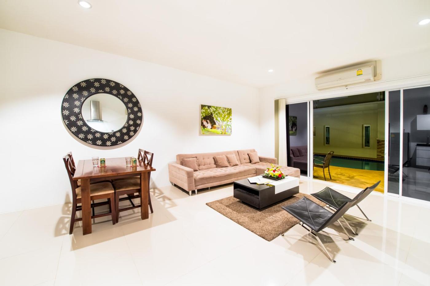 Two-Bedroom Villa. Guests will have a special experience as the villa features a spa bath. Featuring a private entrance, this air-conditioned villa consists of 1 living room, 2 separate bedrooms and 2 bathrooms with a shower and a hairdryer. Guests will find a stovetop, a refrigerator, kitchenware and a microwave in the well-equipped kitchen. The villa also offers a barbecue. Boasting a terrace with pool views, this villa also provides a minibar and a flat-screen TV. The unit offers 2 beds. ;