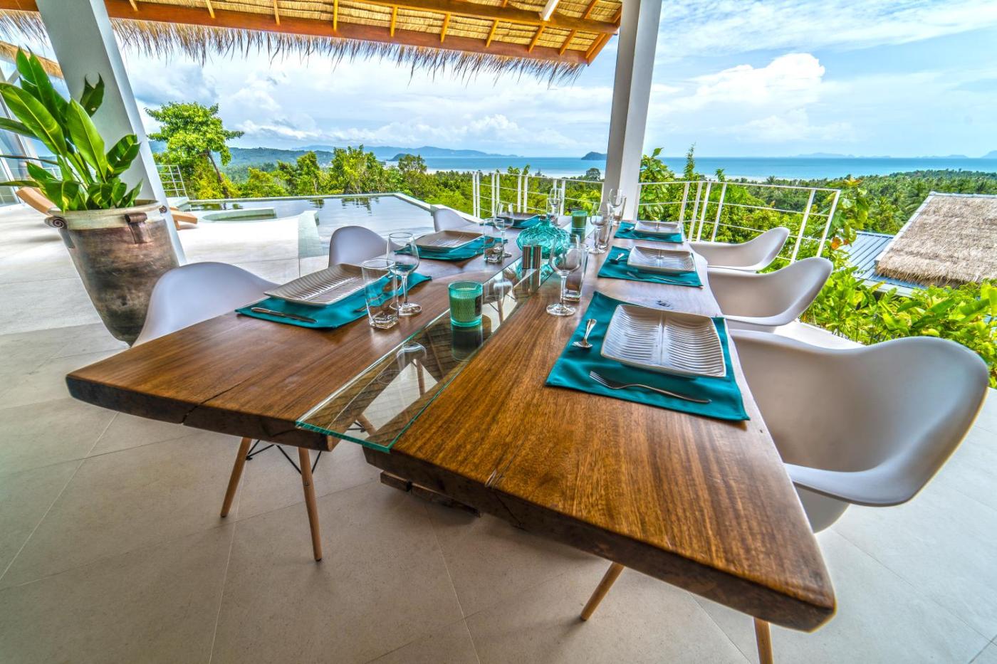 Villa. This villas special feature is the pool with a view. This spacious villa consists of 1 living room, 3 separate bedrooms and 3 bathrooms with a shower and a bidet. The fully equipped kitchen features a refrigerator, a dishwasher, kitchenware and an oven. The air-conditioned villa provides a flat-screen TV with streaming services, soundproof walls, a minibar, a tea and coffee maker as well as sea views. The unit offers 3 beds.